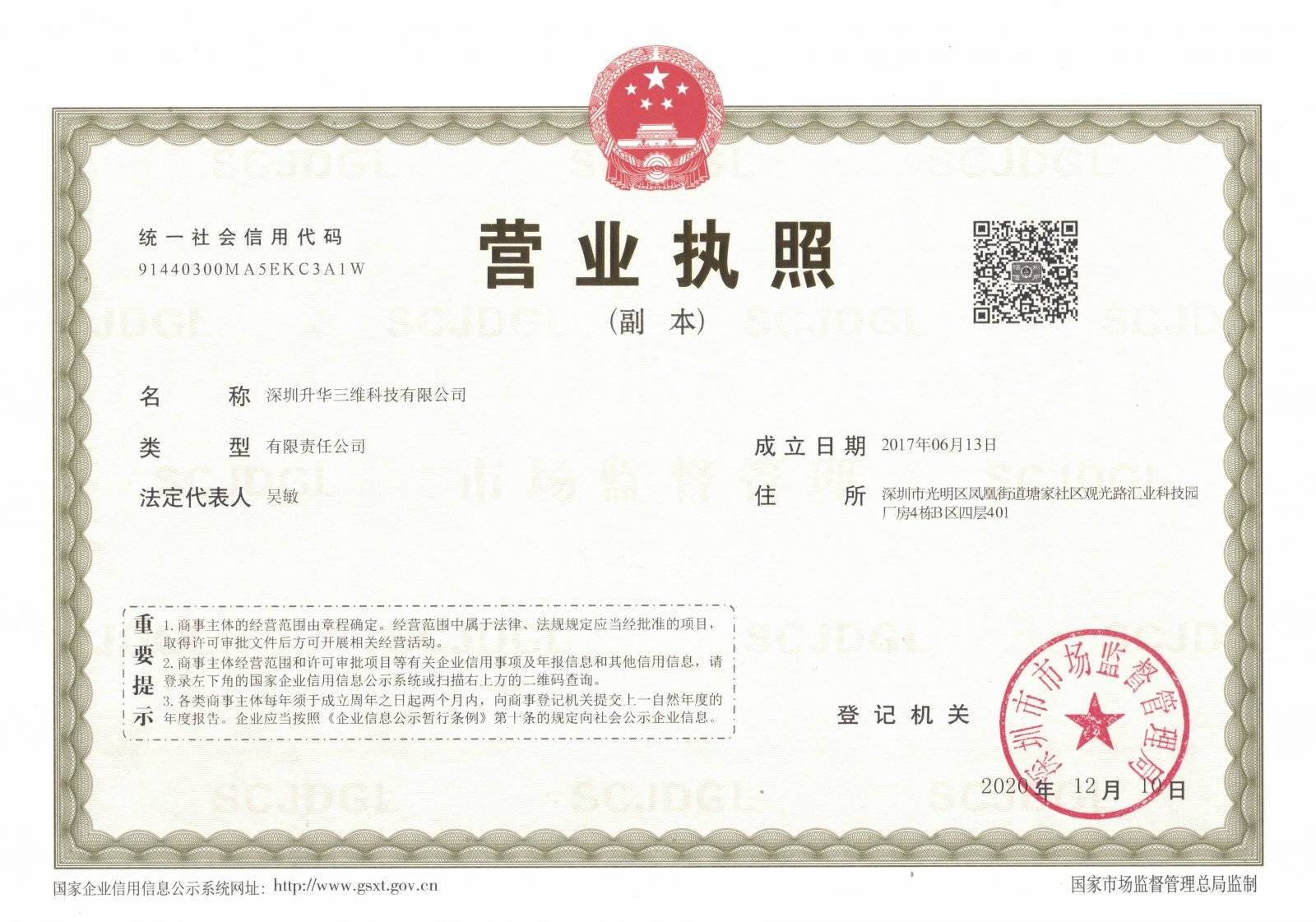 深圳升华三维科技有限公司企业类型